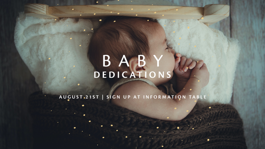 If you are interested in having your child dedicated on this date, please visit the Information Table to sign-up and to fill out your Baby Dedication application.