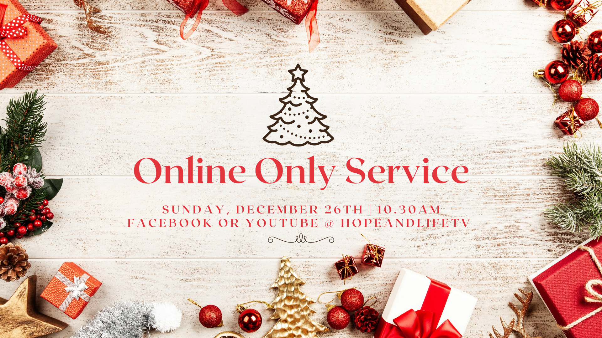 On December 26th, the day after Christmas, we will be gathering to fellowship in church through our online stream ONLY. Please spend the day enjoying family, friends, and taking time to reflect on the true meaning on Christmas.