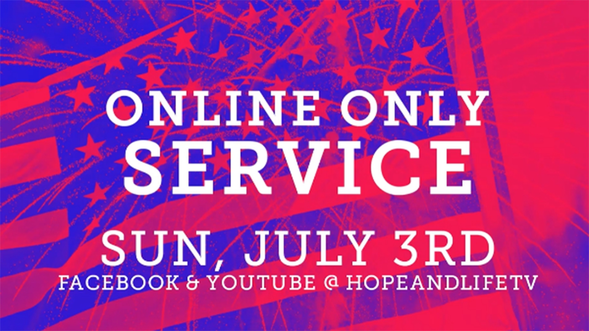 We will NOT have an in-person service at the AMC theater on Sunday, July 3rd, 2022. Instead, we will only meet ONLINE on that Sunday. Please join us online on Sunday, July 3rd at 10:30am at either www.Facebook.com/HopeAndLifeTV or at www.YouTube.com/HopeAndLifeTV .
